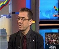 El analista político y académico español, Juan Carlos Monedero, afirmó este domingo que el candidato opositor por la Mesa de la Unidad (MUD) para las elecciones presidenciales que se realizarán el 14 de abril, Enrique Capriles Radonski, es un candidato a la fuerza que se ve desencajado, perdido y obligado a asumir un papel que no desea.