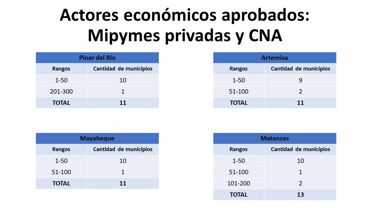 • Un solo municipio en Cuba no tiene ningún actor aprobado: Bolivia, Ciego de Ávila.