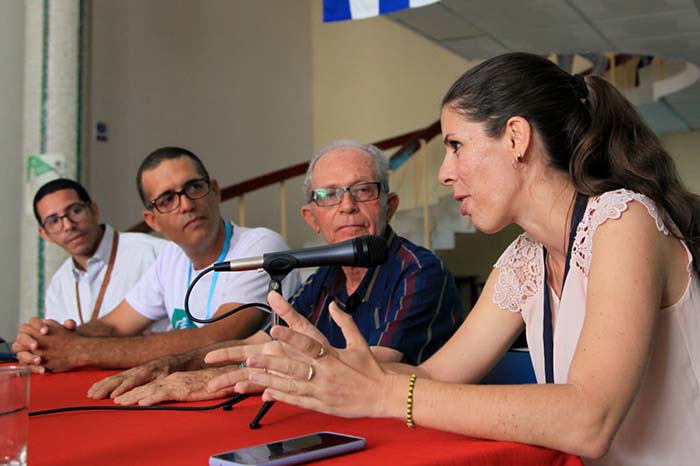 Evelyn Corbillón Díaz, corresponsal jefa de la ACN en Pinar del Río, se refirió a su experiencia como joven profesional que ha podido vivir la principal transformación editorial a partir de un mayor aprovechamiento de las tecnologías de la información y las comunicaciones, sin perder la rigurosidad de las normas de redacción de la Agencia.