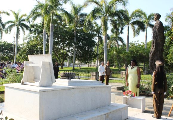 Hasta el camposanto acudieron a depositar flores, las principales autoridades locales encabezadas por Beatriz Johnson, miembro del Comité Central del Partido Comunista de Cuba (PCC), del Consejo de Estado y primera secretaria en la provincia.