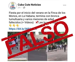 El Gobierno de La Habana desmintió, este domingo, las noticias falsas que desde este sábado circulan en redes sociales, relacionadas con el fallecimiento de jóvenes en una actividad en la Finca de los Monos.