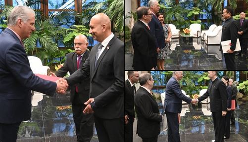 El presidente de la República, Miguel Díaz-Canel Bermúdez, recibió este lunes las cartas credenciales de tres nuevos embajadores que representarán a sus respectivos países en la isla.