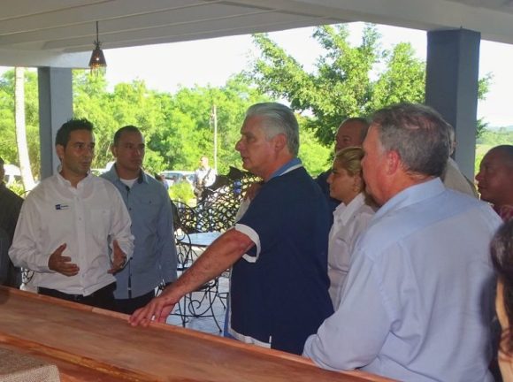 El presidente cubano comenzó su recorrido en Sancti Spíritus por el hotel Zaza. Foto: Escambray.