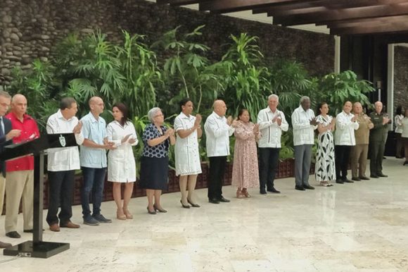 Presidieron también la ceremonia de condecoraciones, que se realizó en el capitalino Centro de Convenciones El Laguito, los miembros del Buró Político, Esteban Lazo Hernández, presidente de la Asamblea Nacional del Poder Popular y del Consejo de Estado; Roberto Morales Ojeda, secretario de Organización del Comité Central del PCC, y Teresa Amarelle Boué, secretaria general de la Federación de Mujeres Cubanas (FMC).