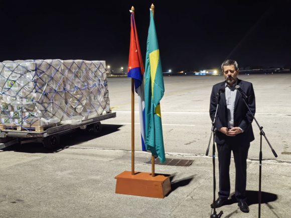Al agradecer estos donativos, la viceministra de Comercio Exterior y la Inversión Extranjera, Deborah Rivas, subrayó los vínculos bilaterales de colaboración, y recordó la reciente llegada de leche en polvo aportada por Brasil tras el paso de los meteoros, que provocaron severos daños en varias provincias.