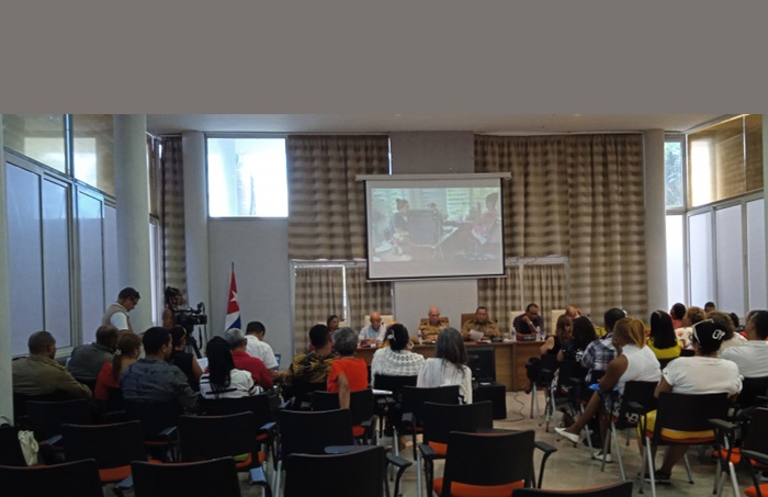 La Asamblea estuvo presidida por el General de División, Raúl Omar Acosta Gregorich, Presidente del Instituto Nacional, y su homólogo de la delegación territorial, Antonio Lorente. Foto: Periódico Sierra Maestra