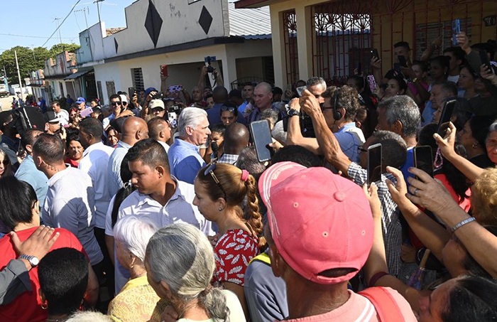 Antes de que comenzara la reunión conclusiva de la visita al territorio central, Díaz-Canel fue nuevamente al encuentro con el pueblo: frente a la sede del Comité Municipal del Partido Comunista saludó, como ya es habitual, a los hijos de un municipio, ese espacio clave que, sumado a otros muchos, hacen la suerte de un país.