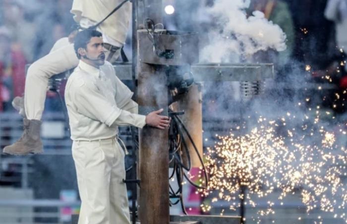 Según reportes de prensa e imágenes de televisión, Bad Bunny apareció entre campos de caña de su tierra natal, rodeado de agricultores con sombreros de paja tradicionales y un puesto de hielo raspado, entre otros detalles, cantando de primer momento su éxito Tití me preguntó.