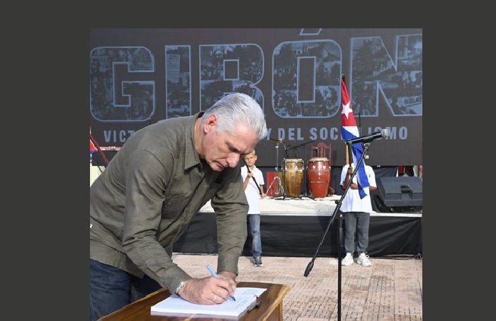 En la simbólica localidad de Playa Girón, donde Cuba derrotó la invasión mercenaria hace 65 años, el mandatario presidió el acto de homenaje a los caídos en aquella epopeya, que dejó claro ante el mundo que la Revolución tendría siempre fuerzas morales y militares para defenderse.